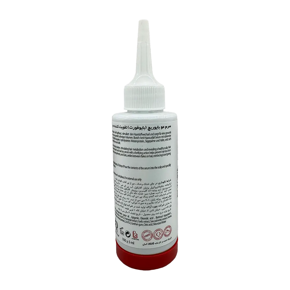 • ریشه مو را تقویت می‌کند: ریشه موی برخی از افراد ضعیف است و همین موضوع باعث ریزش می‌شود. سرم تقویت کننده و ضد ریزش مو بایوریچ(بایوفورت) می‌توانند ریشه مو را تقویت کنند.