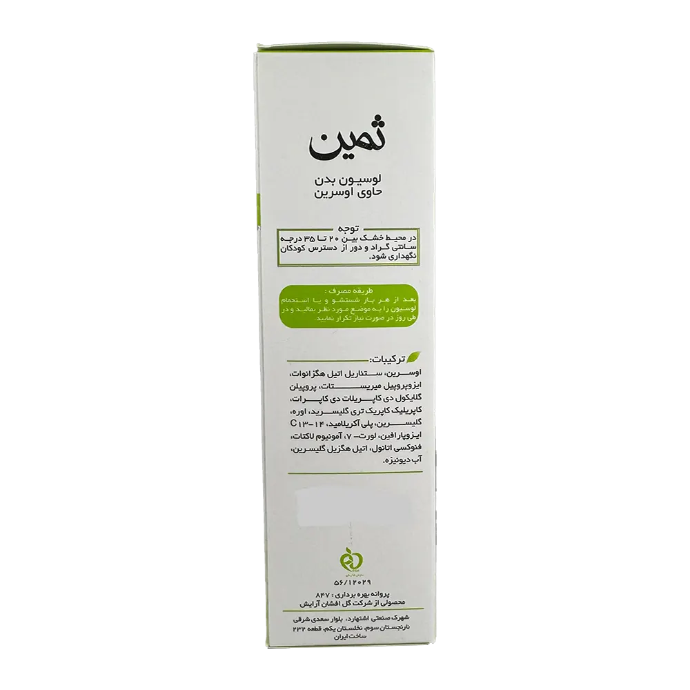 لوسیون بدن حاوی اوسرین ثمین،یک محصول آرایشی و بهداشتی است که برای مراقبت و نرمی پوست بدن استفاده می شود.