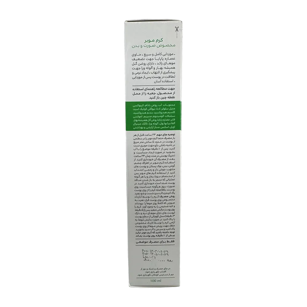 کرم موبر سینره،با داشتن عصاره پاپایا در کاهش فعالیت پیاز مو و رفع انواع موهای زائد بسیار موثر است.