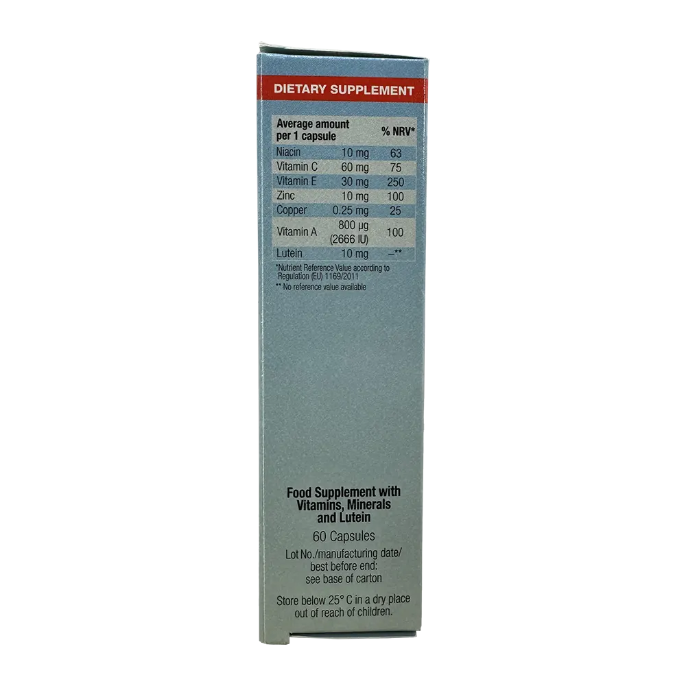 • لوتئین (10mg): یک آنتی‌اکسیدان کاروتنوئیدی مهم که در شبکیه چشم (ماکولا) تجمع می‌یابد و نقش محافظتی در برابر نور آبی و اشعه ماورای بنفش دارد.