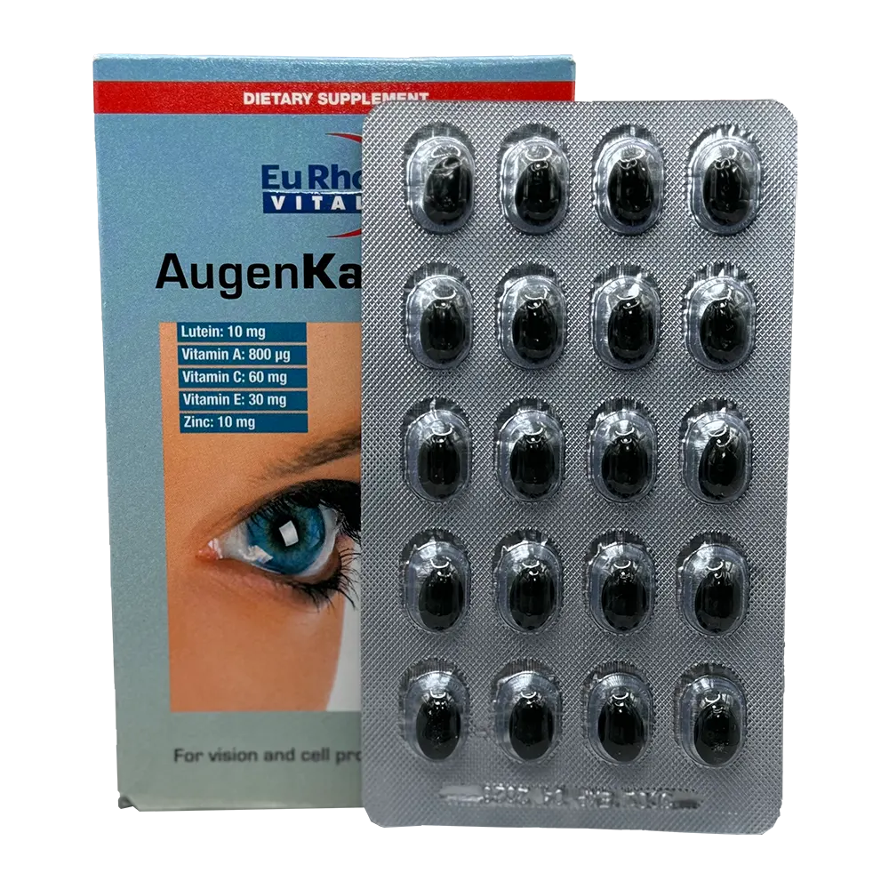 سافت ژل اوژن یوروویتال (Eurho Vital Augen Eye Cap) یکی از مکمل‌های تخصصی و با کیفیت برای حفظ سلامت چشم و بهبود عملکرد بینایی است. این مکمل آلمانی، با ترکیبی از لوتئین، زینک، ویتامین A، ویتامین C، ویتامین E، مس و نیاسین، به عنوان یک محافظ قوی در برابر عوامل آسیب‌زا به چشم از جمله نور آبی، اشعه UV، پیری و رادیکال‌های آزاد عمل می‌کند.