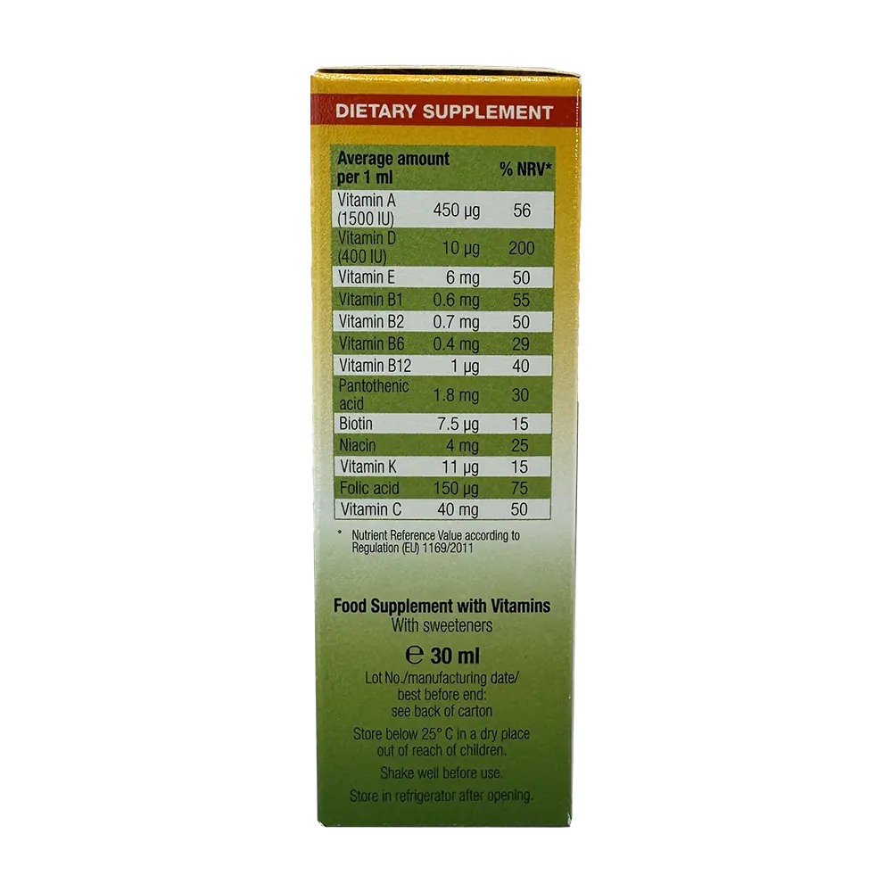 قطره مولتی ویتامین بیبی جویس یوروویتال یک مکمل غذایی برای کودکان است که به رشد صحیح و تأمین ویتامینهای ضروری آنها کمک میکند.