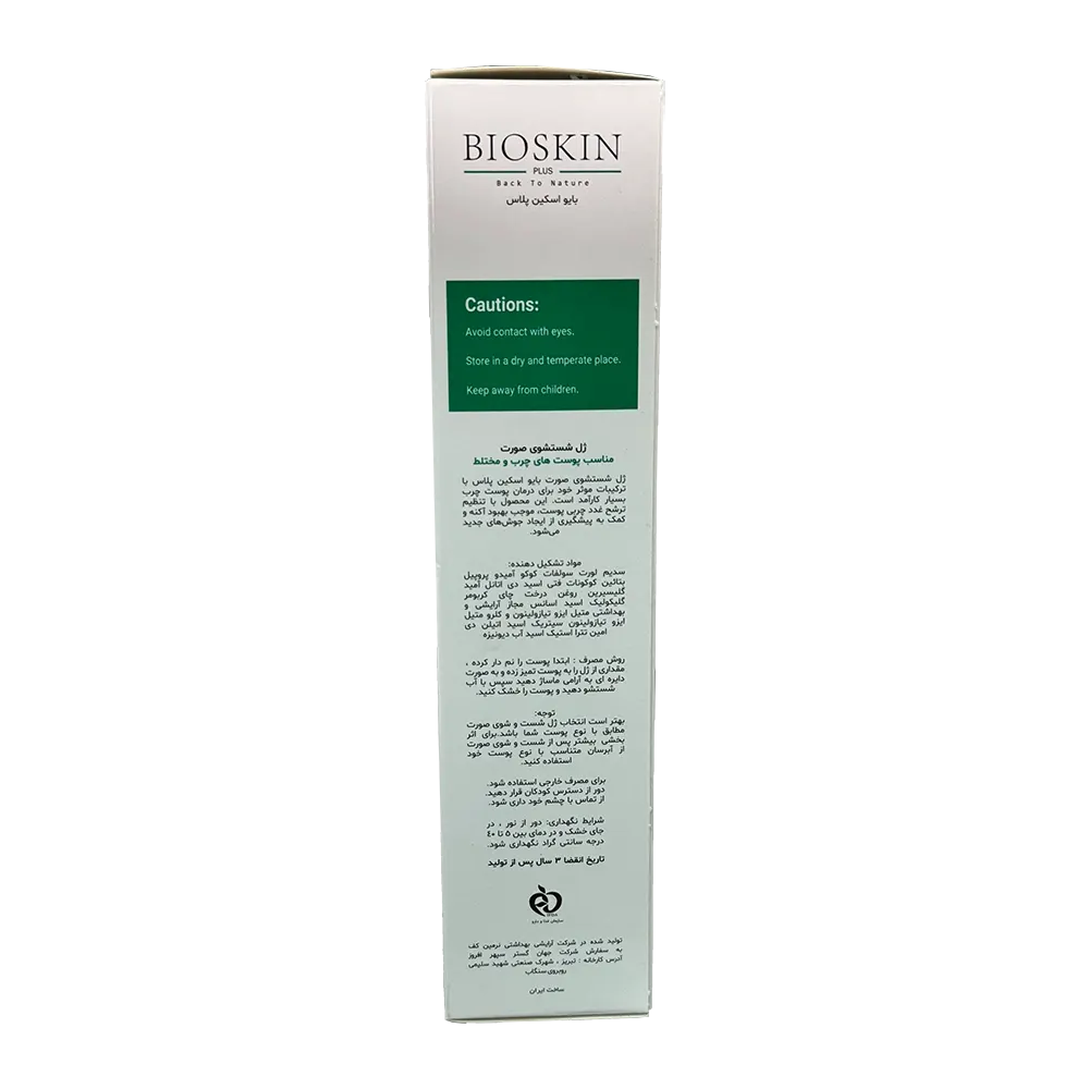 ژل شستشوی صورت پوست چرب و مختلط بایو اسکین،فاقد پارابن و مواد صابونی بوده و از هرگونه حساسیت و التهاب پوستی جلوگیری می نماید.