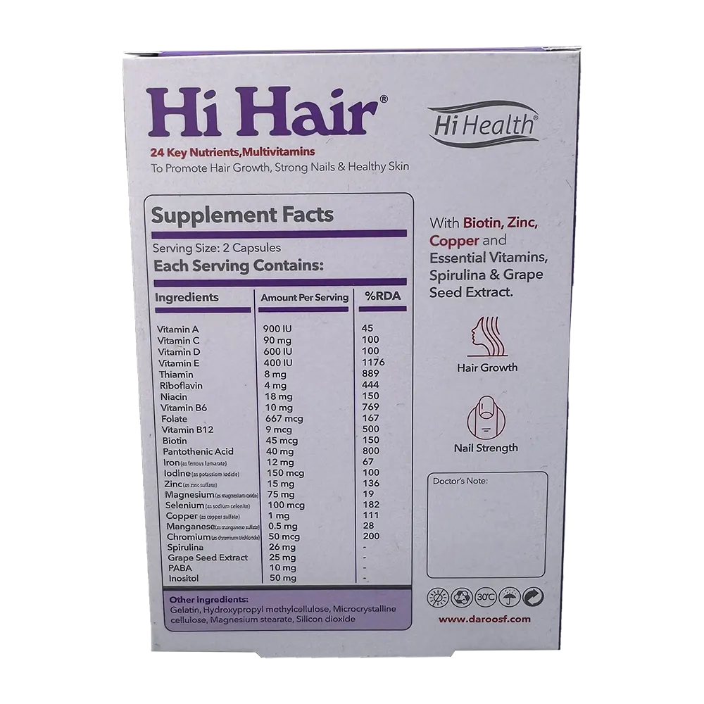 با وجود این ترکیبات گسترده، Hi Hair به عنوان یک مکمل جامع برای مو، پوست و ناخن شناخته میشود.