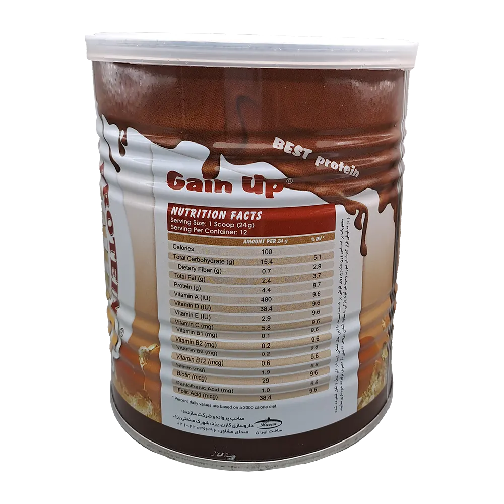 مکمل غذایی گین آپ کودکان 300 گرم کارن حاوی 17/6% پروتئین بر پایه پروتئین whey می‌باشد که حاوی تمام اسیدهای ضروری و غیرضروری است و قابلیت هضم و جذب بالایی دارد.