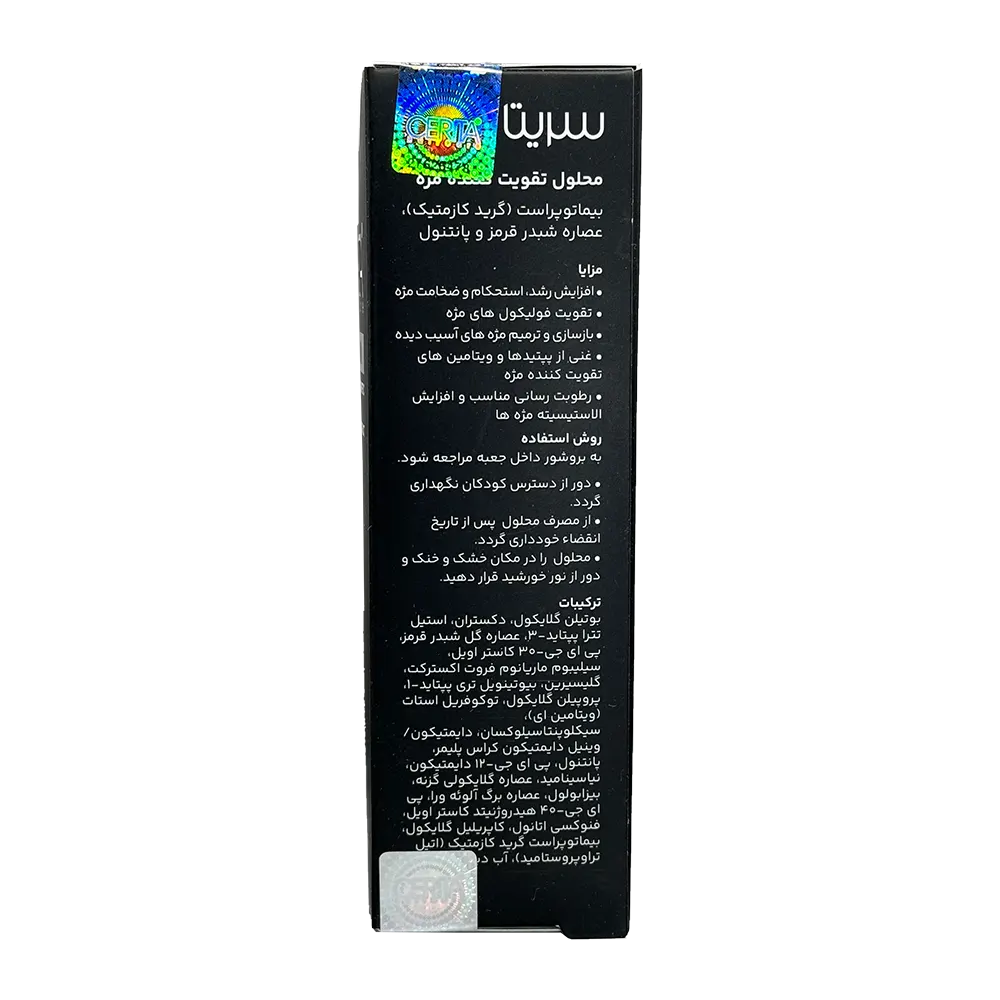 محلول تقویت کننده مژه سریتا یک محصول آرایشی است که به منظور تقویت و بلند شدن و ضخامت مژه ها ساخته شده است.