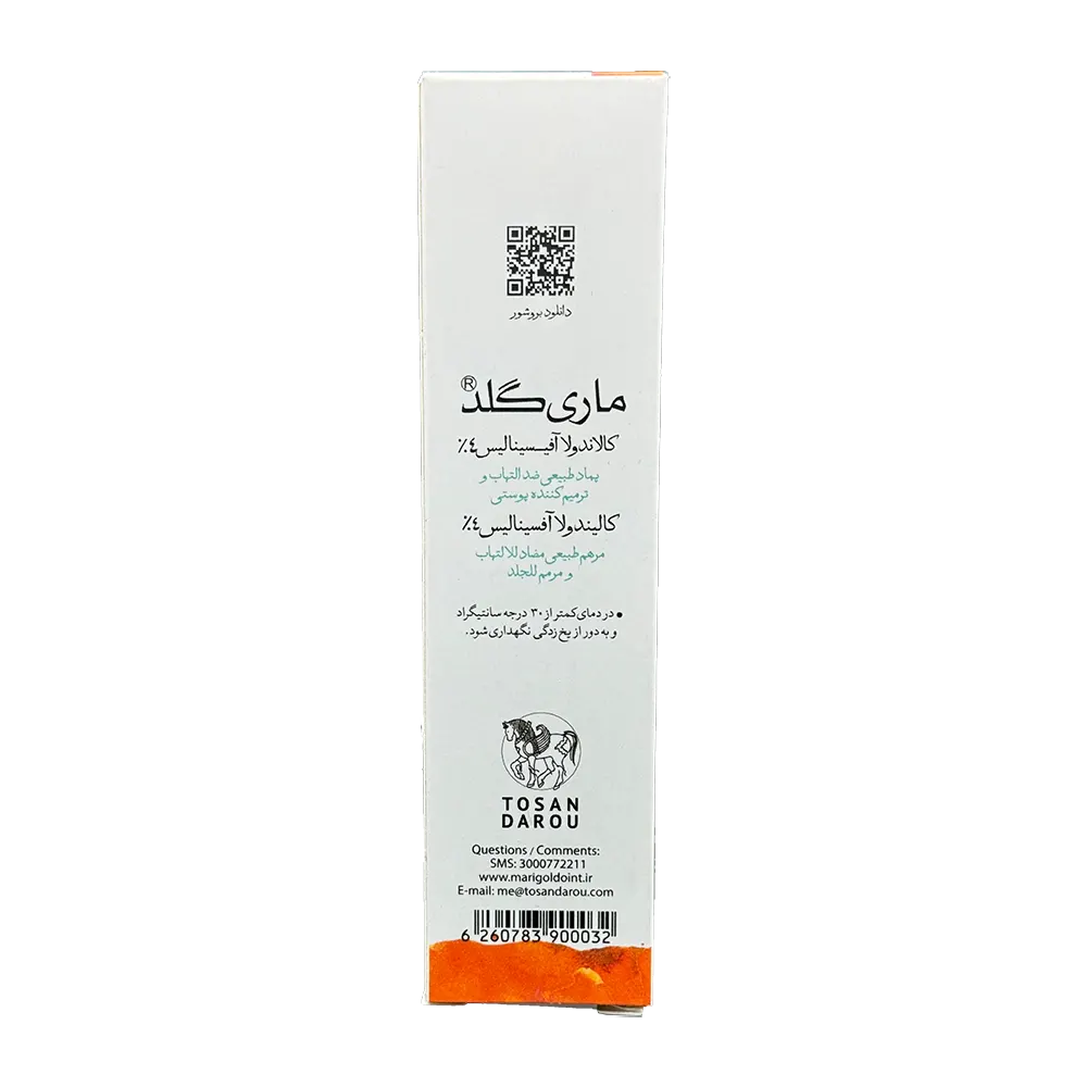پماد ماریگلد® (Tosan Darou Marigold Topical Ointment) محصولی بومی از برند ایرانی «توسن دارو» است که با عصارهی کالاندولا آفیسینالیس ۴٪ فرموله شده است. این پماد با اثرات مرطوبکنندگی، ضدالتهابی و ترمیمی شناخته میشود، و برای انواع التهابات، سوختگیهای سطحی و آسیبهای پوستی مناسب است.