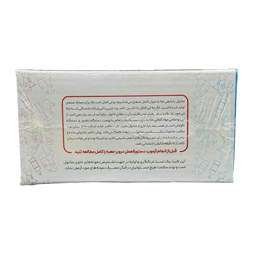 کیت تشخیص متانول نوند سلامت،جهت شناسایی متانول در محلول ها و همچنین تشخیص الکل طبی تقلبی به کار می رود.