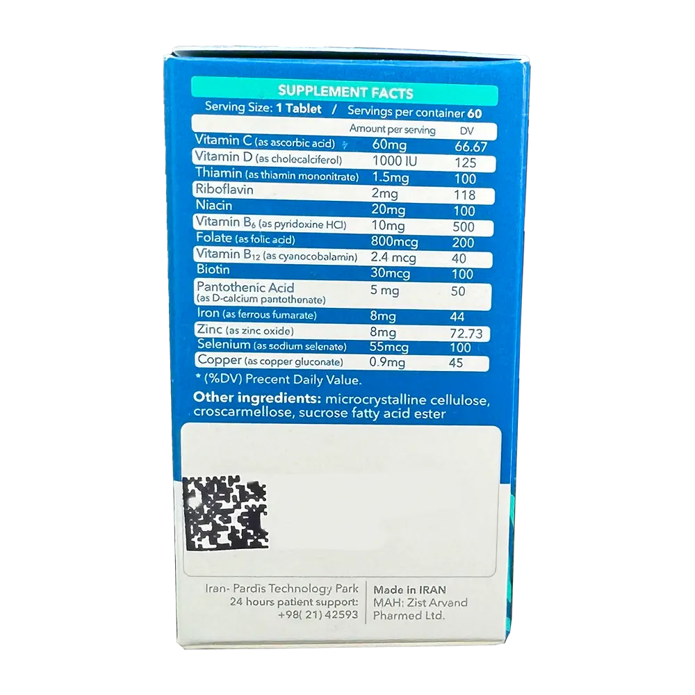 • ویتامین C (60 mg): آنتی‌اکسیدان قوی برای محافظت از بافت‌ها و بهبود عملکرد سیستم ایمنی .