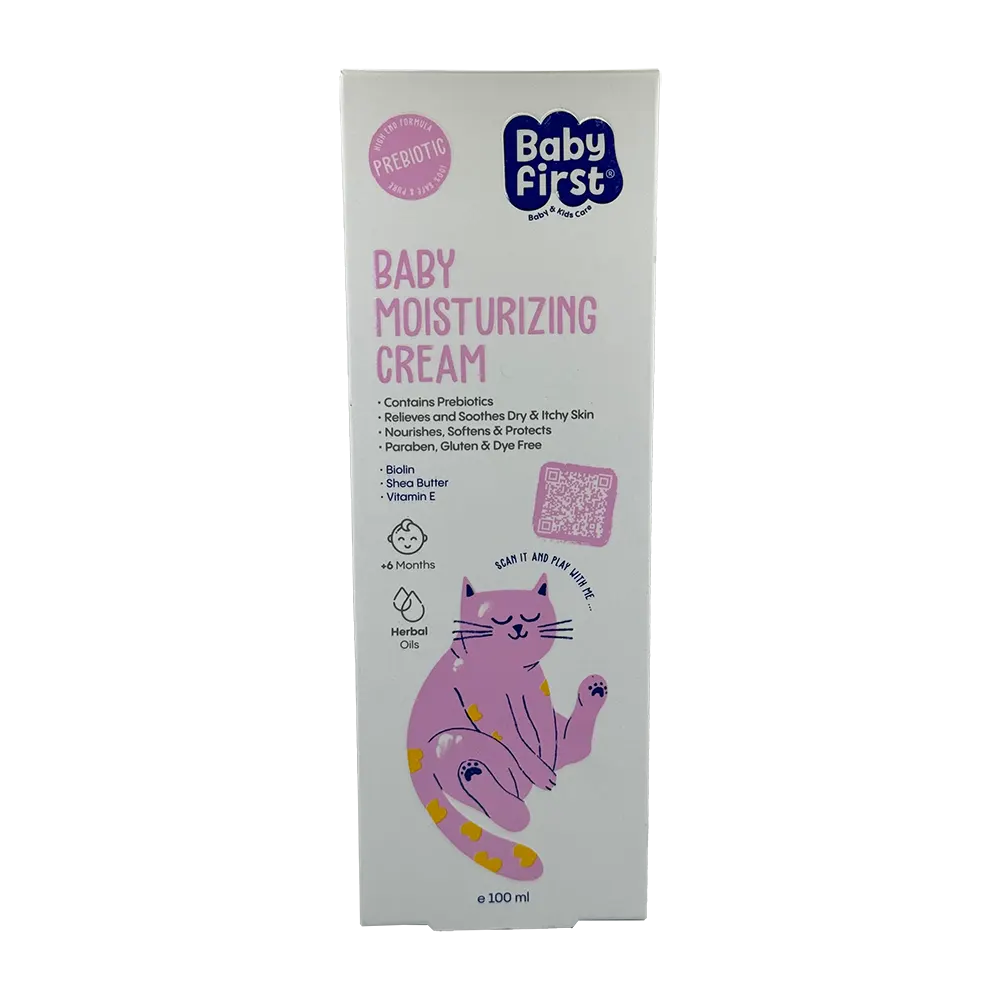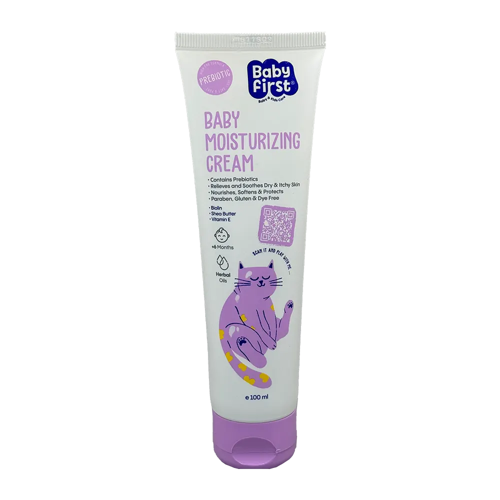 کرم مرطوب کننده گیاهی کودک بیبی فرست حاوی روغنهای گیاهی مرطوب کننده و التیام بخش،مغذی و نرم کننده پوستهای بسیار خشک و حساس است.