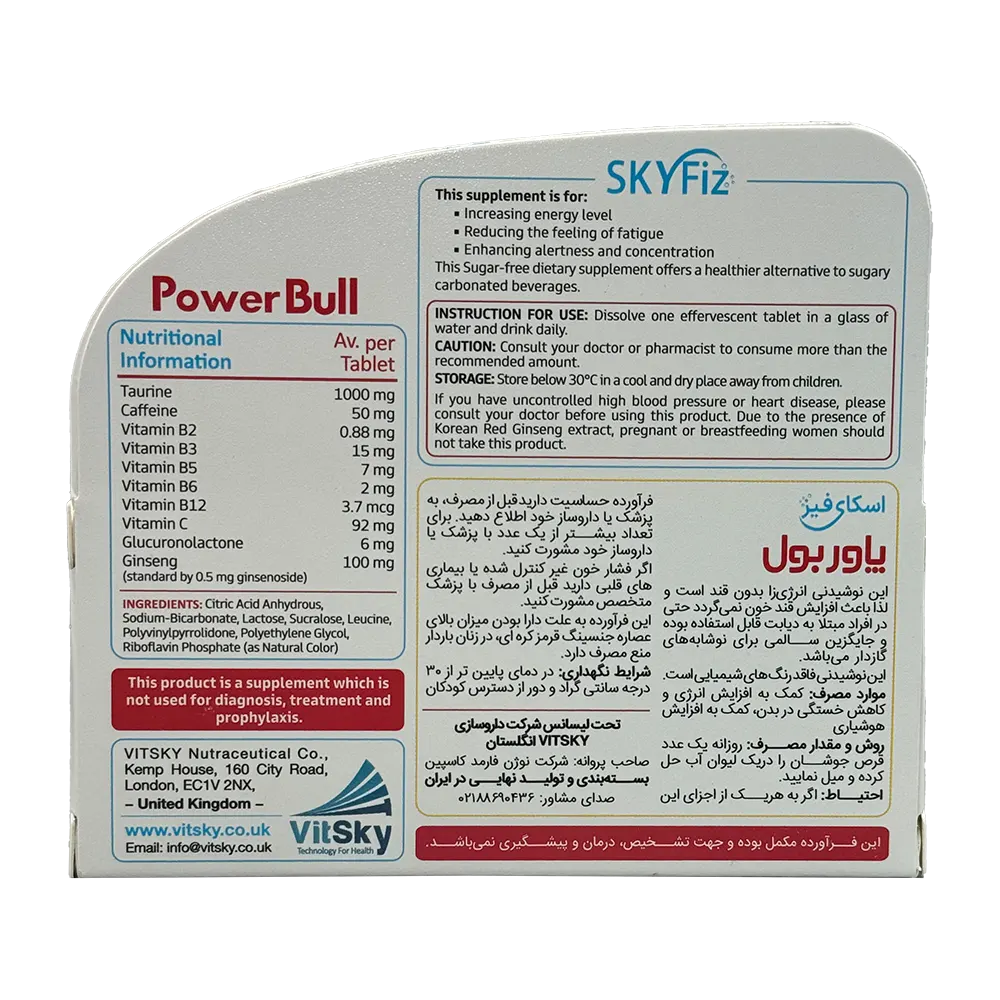 اگر به دنبال راهی سریع، مطمئن و سالم برای افزایش انرژی و تمرکز هستید، قرص جوشان اسکای فیز پاور بول انتخابی هوشمندانه است. این محصول نهتنها به کاهش خستگی و بهبود عملکرد کمک میکند، بلکه با ترکیبات علمی خود، از بدن در برابر استرسهای فیزیکی و ذهنی نیز محافظت مینماید.